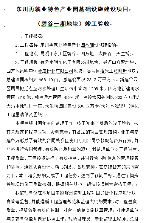 东川再就业特色产业园基础设施建设项目 (碧谷一期地块)竣工验收