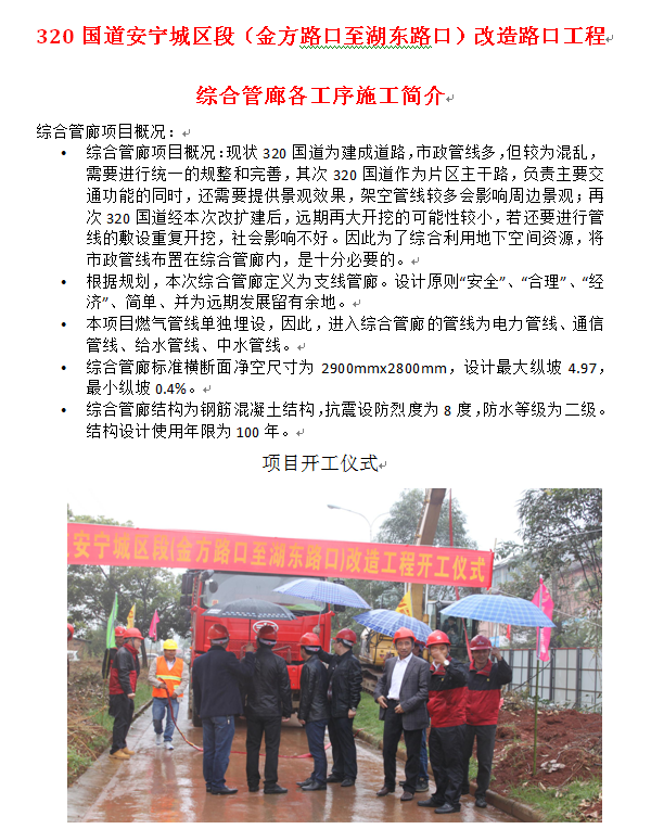 320国道安宁城区段(金方路口至湖东路口)改造路口工程 综合管廊各工序施工简介